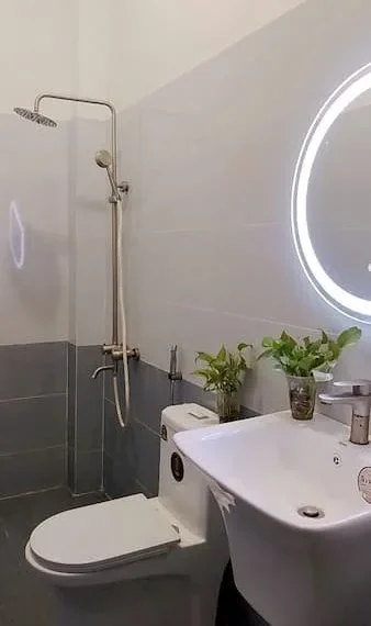 + Nhà vệ sinh: Trang thiết bị hiện đại với gương LED cảm ứng, vòi sen đứng và không gian sạch sẽ.