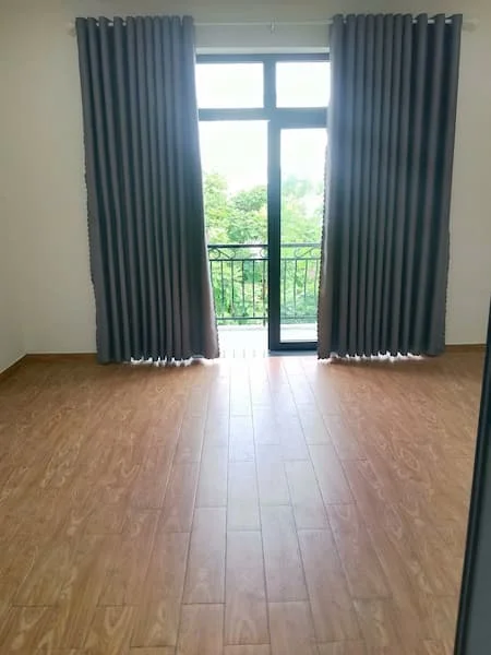 + Phòng ngủ: Sàn gỗ ấm cúng, cửa kính lớn đón ánh sáng tự nhiên, view nhìn ra khu vực cây xanh thoáng mát, có sẵn rèm cửa.