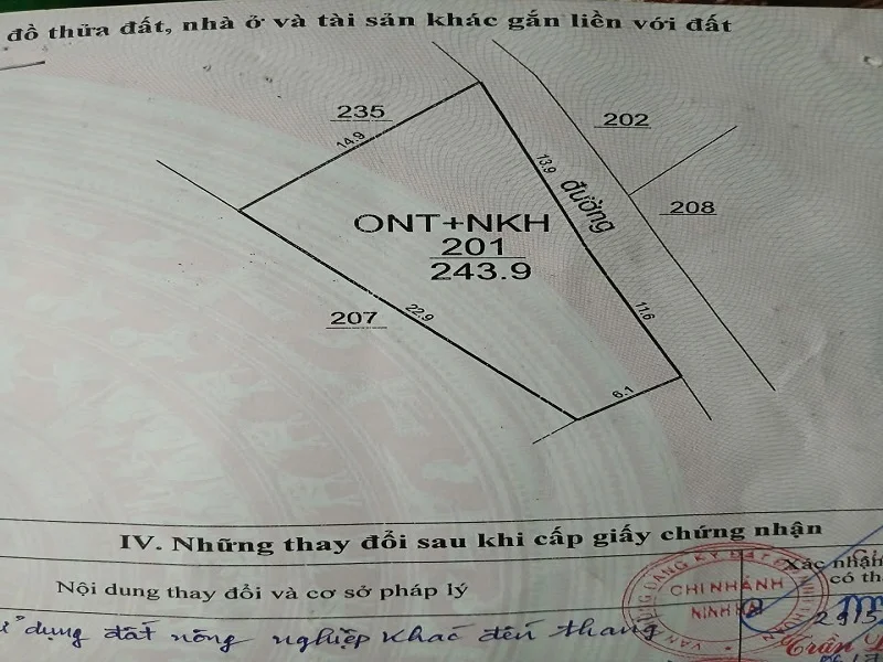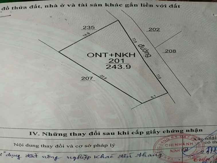- Diện tích: 243,9m2 ( có 100m2 ONT; 143,9m2 HNK)