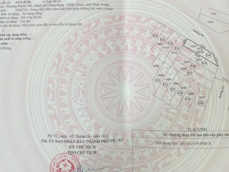 • Vị trí: Lô góc 2 mặt tiền đường Phan Huy Ích – Cao Lỗ, khu TĐC Phan Đăng Lưu, cách Quốc lộ 1A chỉ vài trăm mét, gần bến xe Phan Rang, cách Ga Tháp Chàm 3km, cách Quảng trường 16/4 chỉ 10 phút đi xe máy, 15p đến biển Bình Sơn Ninh Chử. Khu vực dân cư hiện hữu, yên tĩnh, không khí trong lành, rất phù hợp để xây nhà ở, văn phòng, nhà nghỉ.